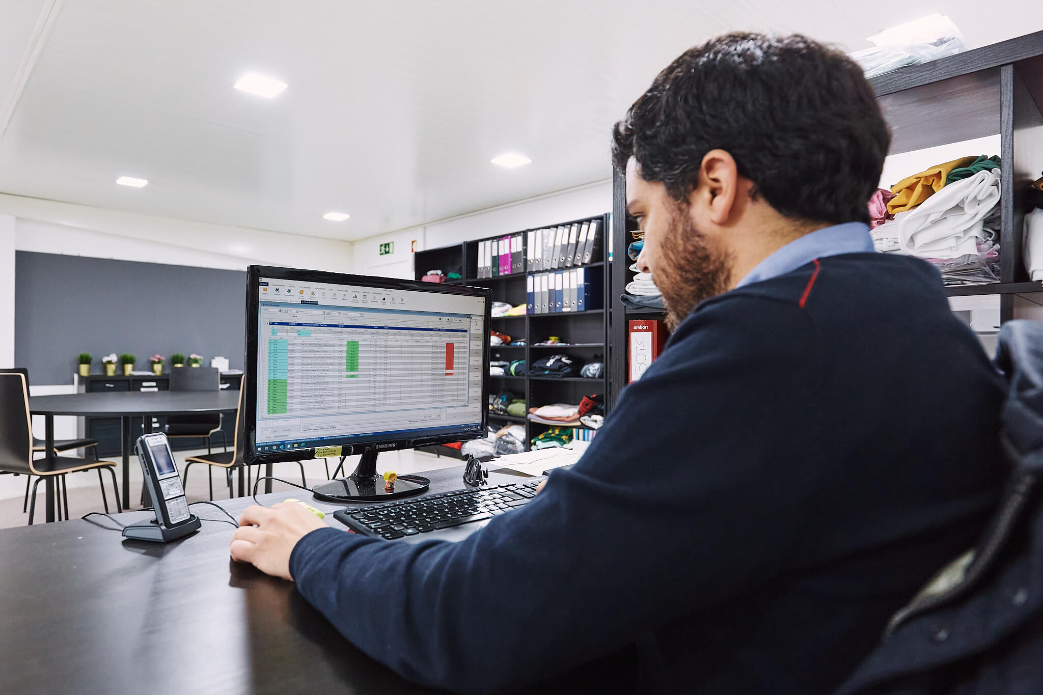 Apostamos numa forte especialização e dispomos de uma equipa qualificada que acompanha todos os processos existentes na nossa empresa, tendo também como suporte um software que tem a capacidade de controlar tanto a área financeira como a área de produção e com recursos humanos qualificados nos departamentos de corte, confeção, prensa, acabamentos e embalagem.